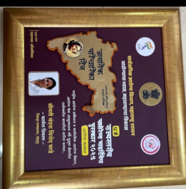 गौतम नगरी चौफेर /प्रभाकर खाडे वरोरा – गडचांदूर नर्सिंग क्षेत्रातिल प्रतिष्ठीत समजला जाणारा महाराष्ट्र शासनाचा राज्य स्तरीय फ्लाॅरेंन्स नाईटिंगेल आंतरराष्ट्रीय परिचारिका पुरस्कार वंदना विनोद बरडे सहायक अधीसेवीका ऊप जिल्हा रूग्णालय वरोरा जिल्हा चंद्रपूर यांना मा.प्रकाशजी आबीटकर सार्वजनिक आरोग्य मंत्री व खासदार धर्यशील माने यांच्या हस्ते सन्मानित करण्यात आले दिनांक १२ मे २०२५ ला राजश्री शाहू महाराज सभागृह कोल्हापूर येथे महाराष्ट्र शासनाचा राज्य स्तरीय फ्लाॅरेंन्स नाईटिंगेल नर्सेस पुरस्काराचे आयोजन करण्यात आले होते. या कार्यक्रमासाठी मंचावर उपस्थित खासदार धर्यशल माने, प्रकाश आबिटकर सार्वजनिक आरोग्य मंत्री व कोल्हापूरचे पालकमंत्री, डॉ नितीन आंबाडेकर संचालक आरोग्य सेवा मंडळ मुंबई, डॉ पुरुषोत्तम मडावी उपसंचालक शुश्रुषा आरोग्य सेवा मंडळ मुंबई, डॉ निलिमा सोनवणे सह.संचालक शुश्रुषा आरोग्य सेवा मुंबई, ईत्यादी मान्यवर उपस्थित होते. महाराष्ट्र शासनाचा राज्य स्तरीय सहा पुरस्काराचे वितरण करण्यात आले. त्यामध्ये वंदना विनोद बरडे सहायक अधीसेवीका ऊप जिल्हा रूग्णालय वरोरा जिल्हा चंद्रपूर यांना धर्यशिल माने खासदार व आरोग्य मंत्री प्रकाश आबिटकर व ईतर मान्यवरांच्या उपस्थितीत वंदना विनोद बरडे सहायक अधीसेवीका यांना प्रदान करण्यात आला.