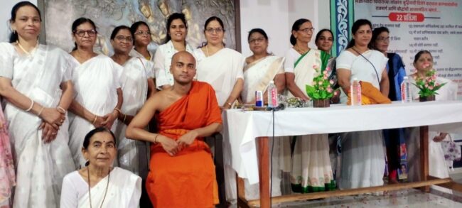 गौतम नगरी चौफेर संजीव भांबोरे भंडारा – लाखनी येथील महाप्रज्ञा बुद्ध विहार येथे मार्गदर्शन करताना शिवली बोधी श्रीलंका येथील परमपूज्य भंतेजी म्हणाले की समाधी, संबोधी आणि सदाचार हेच बौद्ध धम्माच्या कुशल कर्माचे अधिष्ठान असल्याचे सांगितले, पुढे ते म्हणाले की बौद्ध धर्म हा शाक्य कुलोत्पन्न तथागत गौतम बुद्ध यांनी स्थापन केला. मानवी जीवन सुखकर बनविण्यासाठी जो मध्यम मार्ग सांगितला नीतिमान जीवन जगण्यासाठी जी आचार संहिता सांगितली ती म्हणजे धम्म होय. तथागतांनी सुमारे अडीच हजार वर्षांपूर्वी वाराणसी जवळ सारनाथ येथील मनोगतय वनात सुरुवातीस त्यांची विरोधक असलेल्या पंचवर्गीय मन परिवर्तन करून त्यांच्यासमोर जे धम्मचक्र प्रवर्तन केले तेव्हापासून अव्याहतपणे बौद्ध धम्म पुढे संपूर्ण भारतभर आणि भारताबाहेरही पसरला आणि सर्वोच्च स्तरावरील लोकांनी त्यांचा उत्स्फूर्तपणे अंगीकार केला. बुद्ध ही व्यक्ती पूजत नव्हते अत्त दीप भव म्हणजे स्वयंप्रकाशित होऊन स्वतःच मार्ग अंगी करा असा त्यांनी उद्घोष केला धम्मामध्ये स्वर्ग, नरक, कर्मकांड, अंधश्रद्धा, पापपुण्य, नवस यांना थारा नाही बुद्धांनी आपले तत्वज्ञान हे पाली या भाषेतून लोकांना सांगितले हे तत्त्वज्ञान सोपे होते. यात कुठलाही अतिरेक नसून बुद्धांनी लोकांना मध्यम मार्ग सांगितला. याप्रसंगी सूत्रसंचालन गजेंद्र गजभिये आणि आभार डॉ रेवाराम खोब्रागडे यांनी केले. यावेळी सदानंद वासनिक, नामदेव कानेकर, युवराज भालाधारे जयंद्र मेश्राम, आशिष गणवीर, प्रज्ञा मेश्राम, सुमन कानेकर, साधना शिंगाडे, कमल गणवीर, सुमन राजवाडे, विना डोंगरे, विद्या डोंगरे,सीमा उके, शीला कोटांगले, रूपा रामटेके, संगीता तिरपुडे, मीरा रामटेके, ज्योती भैसारे, अस्मिता पाटील, सायली ढवळे आणि शेकडो महिला उपस्थित होत्या.