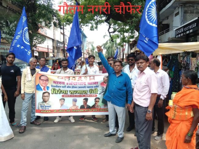 रॅलीत रिपब्लिकन पार्टी ऑफ इंडिया(आठवले) पक्षाचे चंद्रपूर जिल्हाध्यक्ष गौतम तोडे, विदर्भ प्रदेश महासचिव अशोक घोटेकर, महिला जिल्हाध्यक्षा किरण गेडाम,तालूकाध्यक्ष हंसराज वनकर,शहर महासचिव संदीप जंगम, महिला शहराध्यक्ष अश्विनी रायपूरे, तालूकाध्यक्ष प्रभाकर खाडे, नागसेन डांगे, शैलेश राखडे, गीता साखरे, सुप्रसिल गेडाम, राहूल मुन, प्रविण डोर्लिकर,धर्मेश नागदेवते जयप्रकाश कांबळे यांच्यासह पार्टीचे असंख्य कार्यकर्ते सहभागी झाले होते.