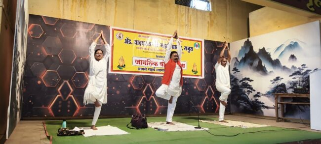 कार्यक्रमाचे संचालन व आभारप्रदर्शन प्रा. धनंजय डवरे यांनी केले. हा योगदिन उत्सव उपस्थितांना नवचैतन्य व आरोग्यविषयक साक्षरतेचा नवा संदेश देणारा ठरला. कार्यक्रमाची सांगता वंदे मातरम् ने झाली.