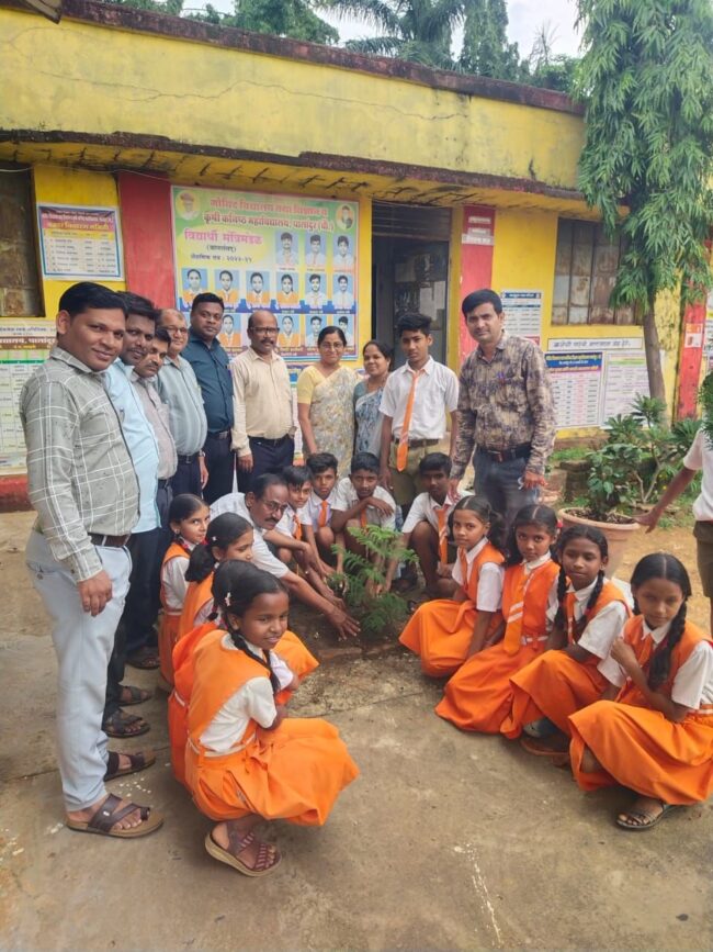 गौतम नगरी चौफेर श्रीकृष्ण देशभ्रतार भडांरा – गोविंद विद्यालय तथा विज्ञान कनिष्ठ महाविद्यालय, पालांदूर (चौ.) येथे “एक पेड माॅं के नाम” हा उपक्रम आयोजित करण्यात आला. प्राचार्य आ.बा. मदनकर सर यांनी वृक्षारोपण केले. यावेळी.प्रा. बारसागडे सर, प्रा. गीत्ते सर, प्रा .देशमुख सर, सौ. कुर्जेकर, कु. काशीकर शिवरकर , राऊत यांच्या उपस्थितीत उपक्रम आयोजित करण्यात आला. प्राचार्य श्री आ.बा मदनकर सर यांनी शाळेच्या परिसरात “एक पेड माॅं के नाम”या उपक्रमांतर्गत वृक्षारोपण करून झाडांचे जतन संवर्धन व महत्त्व पटवून दिले. तसेच संत तुकाराम महाराजांनी वृक्षवल्ली आम्हा सोयरे वनचरे या अभंगातून निसर्ग हा आमचा सखा व सोयरा असून तो आम्हाला सातत्याने ऑक्सिजनचा पुरवठा करतो. भविष्यात मानवाला निसर्गावर अवलंबून राहावे लागणार आहे त्यामुळे मोठ्या प्रमाणात विद्यार्थी व पालकांनी आपल्या घरी शेजारी मोकळ्या जागेत मोठ्या प्रमाणात वृक्षारोपण करून एक पेड माँ के नाम हा उपक्रम यशस्वी करावा असेही बोलताना ते म्हणाले. यावेळी विद्यार्थी, शिक्षक, शिक्षिका व शिक्षकेत्तर कर्मचारी उपस्थित होते.