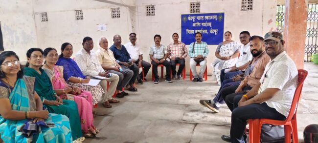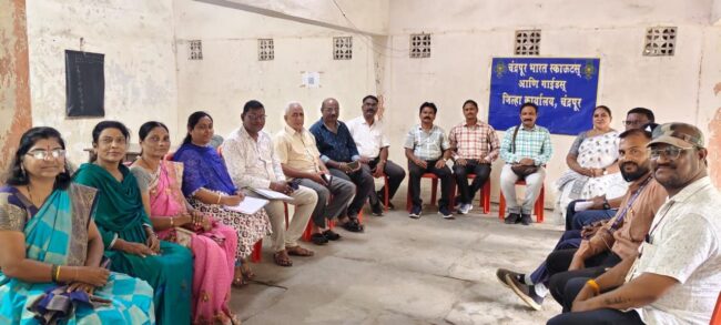 चंद्रपूर भारत स्काऊट्स आणि गाईड्स जिल्हा कार्यालयाच्या वतीने सन २०२५-२६ या सत्राकरिता राज्य पुरस्कार सुधारित प्रवेश अर्ज भरण्याबाबत व अभ्यासक्रमातील बदल, संभावित जिल्हा मेळावा आयोजन, स्काऊट गाईडच्या संख्यात्मक व गुणात्मक वाढीच्या दृष्टिकोनातून स्काऊट मास्तर व गाईड कॅप्टन यांना विषयाची उजळणी होणे आवश्यक आहे करिता तालुका निहाय स्काऊट मास्तर व गाईड कॅप्टन यांचे उजळणी उद्बोधन वर्गाचे आयोजन करण्याबाबत आदी विषयांवर सविस्तरपणे चर्चा करण्यात आली. चंद्रपूर भारत स्काऊट्स आणि गाईड जिल्हा कार्यालय चंद्रपूर येथे आयोजीत सभेला लक्ष्मणराव धोबे, चंद्रकांत भगत, जिल्हा संघटक स्काउट्स, दिपा मडावी, जिल्हा संघटीका, गाईड्स, यशवंत हजारे, सेवानिवृत्त माजी जिल्हा संघटक, स्काउट्स, किशोर ऊईके, जिल्हा प्रशिक्षण आयुक्त, बादल बेले, प्रशांत खुसपुरे, नागेश सुखदेवे, किशोर कानकाटे, प्रमोद बाबळीकर, अविनाश जुमडे, शुद्धोधन मेश्राम, सीमा वादिले, विजयालक्ष्मी कुंडले, सीमा भसारकर, पुरुषोत्तम गायकवाड, रंजना किनाके आदींची प्रामुख्याने उपस्थिती होती. सभेच्या सुरुवातीला स्काउट्स गाईड्स सामूहिक प्रार्थना घेण्यात आली. सभेत अनेक विषयांवर सविस्तरपणे चर्चा करण्यात आली. राजेश पाताळे, शिक्षणाधिकारी माध्यमिक जिल्हा परिषद चंद्रपूर , अश्विनी सोनवणे, शिक्षणाधिकारी प्राथमिक जिल्हा परिषद चंद्रपूर तथा जिल्हा आयुक्त चंद्रपूर भारत स्काऊट आणि गाईड जिल्हा कार्यालय चंद्रपूर यांच्या मार्गदर्शनाखाली सदर सभेचे आयोजन करण्यात आले होते.