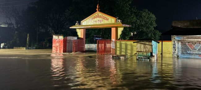 फोटो : 1) याच भवानी मंदिराच्या आतील परिसरात नागरिक अडकले होते