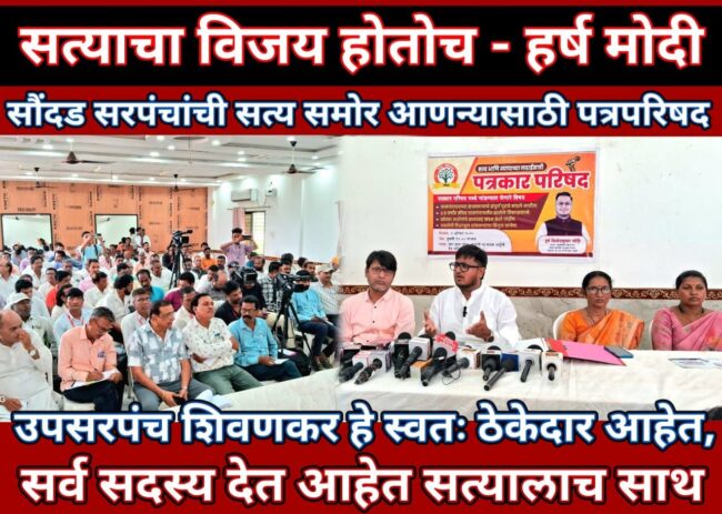 सदर पत्रकार परिषदेला संबोधित करताना सौंदडचे कर्तव्यदक्ष सरपंच हर्ष विनोदकुमार मोदी यांनी सांगितले की, येथील अगोदरच ठेकेदारी करणारे उपसरपंच रोशन शिवणकर यांनी माझ्या विरोधात काही लोकांना घेऊन विना पुराव्याने भ्रष्टाचाराचे, पांदण रस्त्यांवर अतिक्रमण केल्याचे, गैरव्यवहार केल्याचे तत्थ्यहिन आरोप केले. व ते सिध्द करू शकले नाही. यातच काही सोशल मिडीयातून त्यांनी फोटोंसह एडीट करून चुकीची माहिती प्रसारीत करून सौंदड वासियांची चक्क दिशाभूल केली आहे. यावर आम्ही या पारदर्शक व विकासमय सौंदड ग्रामपंचायतची बदनामी केल्याप्रकरणी त्यांच्यावर १ कोटींचा मानहानीचा दावा देखील करण्यात आला व डुग्गीपार पोलीस ठाणे येथे तक्रार दाखल करण्यात आली आहे. येथील जागृत जनतेला सर्व ठाऊक आहे की, सन २०१० पासून मी गोरगरीब जनतेसाठी जनसेवेचा ध्यास घेतला आहे. आमदार डॉ. परीणय फुके यांचे माध्यमातून १० लक्ष रुपयांचा विकासनिधी आणला. आज पूर्वीचे सौंदड कसे होते.? व आज कसे आहे. हे येथील जागृत जनतेचा सर्व माहिती आहे. परंतू ठेकेदारीत ग्रामपंचायतीचे काम न मिळाल्याने ठेकेदार उपसरपंच रोशन शिवणकर हे स्वतःला शेतकरी म्हणविणारे एक कमिशन लाटणारे व्यक्ती आहेत हे जनता जनार्दन यांना माहिती आहे. रोशन शिवणकर यांनी माझ्या राजकीय क्षेत्राची बदनामी करू पाहत आहेत. त्यात शुभम जनबंधू हे सुद्धा सामिल असून अवैध बेहिशेबी मालमत्ता आज यांकडे आली कुठून. मी आजपर्यंत केलेल्या प्रत्येक कामाचा लेखाजोखा हिशोब हा कागदोपत्री नोंद आहे. मी पदभार स्वीकारतात सांगितले होते की, “ठेकेदारी मुक्त सौंदड ग्रामपंचायत” मी बनविणार, मात्र उपसरपंच रोशन शिवणकर यांनी स्वतः ठेकेदारी केली. त्यातच कामात गैरव्यवहार करणे, निकृष्ट दर्जाचे काम करणे व वारंवार बिले काढणे अश्या प्रकारावर मी प्रतिबंध केला असता सुडबुद्धीने ग्रामपंचायतची स्वच्छ पारदर्शक प्रतिमा मलिन करण्याचे षडयंत्र रचले गेले आहे. अश्या खोट्या व्यक्तीच्या खोट्या व बनावट अफवांवर सौंदड ग्रामपंचायत वासियांनी लक्ष देऊ नये. जनतेस माझ्यावर आणि माझा येथील जनतेवर पूर्ण विश्वास आहे. आता सर्व बिनबुडाच्या आरोपांचे पितळ लवकरच उघडे पडणार असून उपसरपंच रोशन शिवणकर यांनी आपला राजीनामा माझ्याकडे तयार ठेवावा. कारण त्यांचा राजीनामा मीच स्विकारणार आहे. मला भारतीय न्याय व्यवस्थेवर पूर्ण विश्वास आहे. यामध्ये “सत्याचाच विजय” होणार आहे. आणि जनतेने सत्याला साथ देण्याचे आवाहन सुद्धा सरपंच हर्ष विनोदकुमार मोदी यांनी झालेल्या पत्रकार परिषदेत केले आहे.