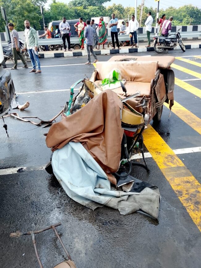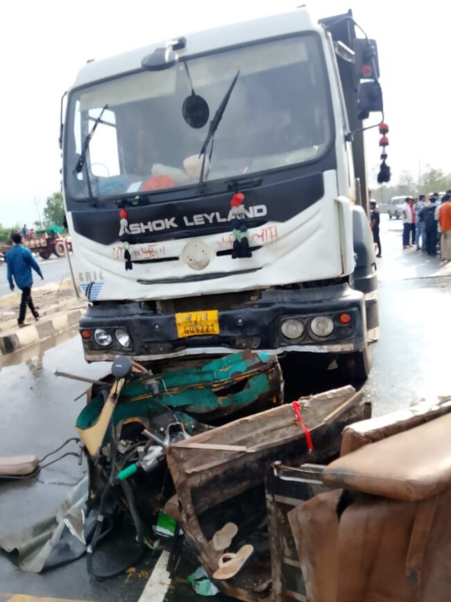 – हायवा ट्रकची ॲटो ला भिषण धडक