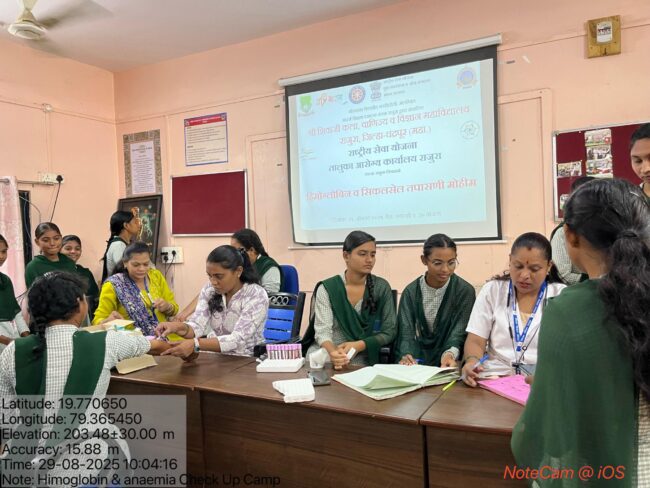 या उपक्रमाद्वारे सामन्यता मुलींच्या रक्तात हिमोग्लोबिन चे असलेले कमी प्रमाण समोर त्यांच्या आयुष्यात अडचणीचे ठरू शकते त्यामुळे तपासणी करून वेळीच उपचार करता येईल यासाठी महाविद्यालयीन विद्यार्थिनीचे रक्त नमुना घेऊन तपासणी साठी पाठविण्यात आले, यासाठी स्टाफ नर्स शोभा कटलावार व कांचन सावे यांचे सहकार्य लाभले, या शिबिराद्वारे विद्यार्थ्यांमध्ये आरोग्यजागृती, अॅनिमिया व सिकलसेल विषयी जागरूकता निर्माण करण्याचा प्रयत्न करण्यात आला.