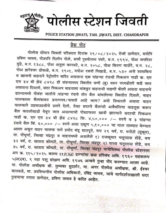 गौतम नगरी चौफेर हकानी शेख प्रतिनिधी जिवती:- पोलीस स्टेशन जिवती येते दि.२८ अगस्ट रोजी गुप्त माहिती मिळाली की शेणगाव येथे राहणारा संभाजी उर्फ पिंटू शिवाजी कत्ते हा इसम स्वतःच्या राहत्या घरी अवैधरित्या गांजा बाळगून चिल्लर विक्री करीत आहे. अशी गुप्त माहिती मिळाल्याने पोलीस अधीक्षक मुमक्का सुदर्शन, अप्पर पोलीस अधीक्षक ईश्वर कातकडे, उपविभागीय पोलीस अधिकारी रवींद्र जाधव, यांच्या मार्गदर्शनाखाली जिवती पोलीस स्टेशनला पथक तयार करून पथक मधील प्रवीण जाधव सपोनि, पोउपनि निखिल रहाटे, पोहवा नारायण गवाले,पोअ जगदीश मुंडे, ज्ञानेश्वर डोकळे, किरण वाटोरे, भाविक टेकाम, अभिषेक आडे, प्रियंका राठोड, शिल्पा कातकर, यांनी दोन पंचासमक्ष सदर आरोपीचे घराची झेडपी घेतली असता आरोपीच्या घराची स्वयंपाक खोली मधून एका निळ्या रंगाचे ड्रम मध्ये ठेवलेल्या प्लास्टिकच्या पिशवीमध्ये एकूण ८६० ग्राम गांजा एकून किंमत ८६०० रुपयेचा निवडून आला असल्याने सदरचा गांजा पंचासमक्ष जप्ती करून कारवाई करण्यात आली असून सदर आरोपी विरुद्ध पोलीस स्टेशन जिवती येथे अपराध क्रं.११४/२०२५ कलम ८(क), २०(ब) NDPS कायद्याअंतर्गत गुन्हा नोंद करण्यात आला असून सदर आरोपीला ताब्यात घेऊन अटक करण्यात आले. सदर गुन्ह्याचा तपास पोलीस स्टेशन जिवती येथील ठाणेदार सहाय्यक पोलीस निरीक्षक प्रवीण जाधव, यांचे मार्गदर्शनाखाली पोलीस उपनिरीक्षक निखिल राहटे हे करीत आहेत.