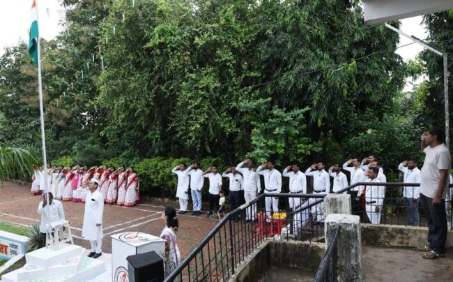 गौतम नगरी चौफेर बादल बेले राजुरा – ॲड.यादवराव धोटे मेमोरियल सोसायटी राजुरा द्वारा संचालित ॲड. यादवराव धोटे महाविद्यालय येथे राजुरा मुक्तीसंग्राम दिन उत्साहपूर्ण वातावरणात साजरा करण्यात आला. सकाळी ठिक 8वाजून 10 मिनिटांनी कार्यक्रमाचे अध्यक्ष व प्रमुख पाहुणे तथा संस्थेचे कोषाध्यक्ष सतीश धोटे यांच्या हस्ते ध्वजारोहण संपन्न झाले. यावेळी त्यांनी उपस्थित सर्वांना राजुरा मुक्ती संग्रामदिनाच्या हार्दिक शुभेच्छा दिल्या आणि लगेचच राज्यगीत घेण्यात आले.