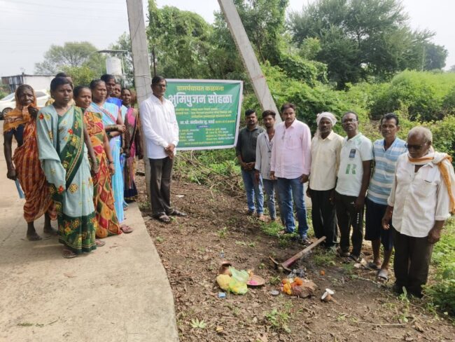 या प्रसंगी ग्रामपंचायत सदस्य दिपक झाडे, पोलीस पाटील गोपाल पाल, ज्येष्ठ नागरिक महादेव पाटील, मोतीराम झाडे, विजय गेडाम, सुधाकर मेक्षाम, शिला बोरकर, शालु झाडे, कुसुम मेक्षाम, सुनिता बोरकर, मोडघरे बाई, घाटे बाई यांच्यासह गावकरी मोठ्या संख्येने उपस्थित होते.