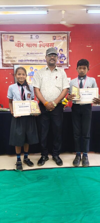 गौतम नगरी चौफेर (सौ सुवर्णा बादल बेले राजुरा) – २६ डिसेंबर शासकीय औद्योगिक प्रशिक्षण संस्था राजुरा कौशल्य रोजगार उद्योजकता व नाविन्यता विभाग महाराष्ट्र राज्य यांचे मार्फत विद्यार्थ्यांमध्ये धैर्य ,त्याग, राष्ट्रभक्ती, संवेदनशीलता या मूल्यांचा प्रसार करण्यासाठी “वीर बालक दिवस” साजरा करण्यात आला. शौर्याची परंपरा साहिबजाद्यांचा यांचा अमर वारसा म्हणून आदर्श मराठी प्राथमिक विद्यामंदिर राजुरा येथील इयत्ता सहावीतील विद्यार्थ्यांनी तुलसी सुरेंद्र आत्राम हिचा राज्यस्तरीय उपक्रमात कर्तृत्व म्हणून धनुर्विद्या खेळात प्रतिनिधित्व करण्यासाठी तसेच संकटाच्या वेळी धाडसी कृती करून जीव वाचविणारे मुले म्हणून चिरायू महादेव सोयाम इयत्ता सातवीतील विद्यार्थ्यांना सन्मानचिन्ह, तसेच कौशल्य रोजगार उद्योजकता व नाविन्यता महाराष्ट्र, मंत्री ॲड.मंगलप्रभात लोढा यांच्या स्वाक्षरीचे प्रमाणपत्र देऊन वीर बालक म्हणून सन्मानित करण्यात आले. कार्यक्रमाचे उद्घाटक म्हणून बादल बेले, महाराष्ट्र राज्य अध्यक्ष, नैसर्गिक पर्यावरण संवर्धन व मानवता विकास संस्था तथा राष्ट्रीय हरित सेना विभाग प्रमुख यांची उपस्थिती होती. तर कार्यक्रमाचे अध्यक्ष म्हणून सुभाष तुरके, प्र. प्राचार्य, शासकीय औद्योगिक प्रशिक्षण संस्था राजुरा यांची तर प्रमुख अतिथी म्हणून रमेश रोडे, गटनिदेशक, सुरेंद्र आत्राम यांची व सत्कारमूर्ती म्हणून तुलसी आत्राम, चिरायू सोयाम यांची प्रामुख्याने उपस्थिती होती. कार्यक्रमाच्या सुरुवातीला चार साहिबजाद्यांच्या प्रतिमेचे पूजन व त्यांच्या शौर्य व त्यागाचा परिचय करून देण्यात आला. यावेळी पोस्टर व चित्रकला स्पर्धेतील क्रमांकप्राप्त प्रज्वल वानखेडे, गुरुदास जांभूले, शिवम पुल्लावार, साहिल नन्नावरे, आशिष बोरकर यांचा सन्मान करण्यात आला.