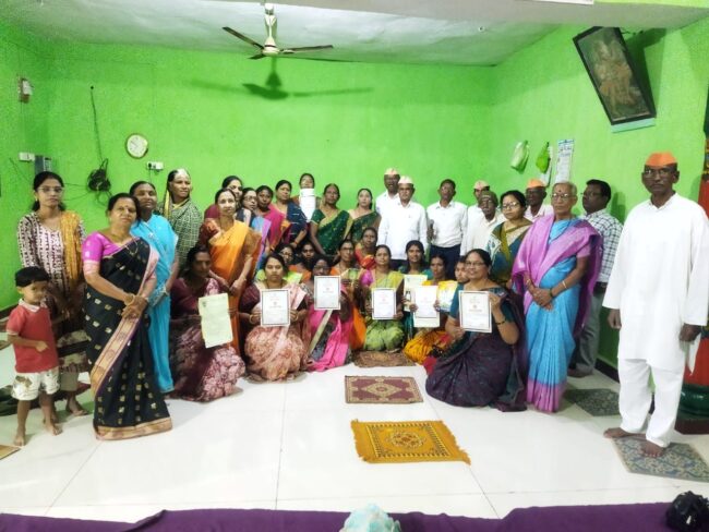 गौतम नगरी चौफेर बादल बेले राजुरा – दिनांक 27/12/2025 रोज शनिवारीला सामुदायिक प्रार्थना मंदिर सिंदेवाही येथे प्रमाणपत्र तथा मार्गदर्शन सोहळ्याचे मोठ्या उत्साहात आयोजन करण्यात आले. सर्वप्रथम सामुदायिक प्रार्थनेने या कार्यक्रमाची सुरुवात झाली.कार्यक्रमाचे अध्यक्ष गुरुदेव सेवा मंडळ तालुका राजुराचे सेवाधिकारी तथा मध्यवर्ती प्रतिनिधी मोहनदास मेश्राम यांनी ” ग्रामसुधारणेचा मूलमंत्र I सज्जनांनी व्हावे एकत्र l संगठना हेची शक्तीचे सूत्र I ग्रामराज्य निर्माण करीI आजच्या तंत्रज्ञान व धकाधकीच्या युगात समाज सुस्थितीत राहण्याकरिता गुरुदेव सेवा मंडळाचे संगठन आणि वंदनीय महाराजांच्या विचारा शिवाय कोणताही पर्याय नाही असे मत व्यक्त केले. मध्यवर्ती प्रतिनिधी ग्रामगीतचार्य मारोती सातपुते यांनी सामुदायिक प्रार्थनेचे महत्व विषद केले . सामुदायिक प्रार्थना म्हणजे शांती नानदण्याचे माध्यम असून विश्वशान्ती निर्माण करण्याचे हे स्वप्न महाराजांचे पूर्ण होईल असे मत व्यक्त केले.म्हणून सामुदायिक प्रार्थनेत नित्य नेमाने उपस्थित राहण्याचे आवाहन केले. तर गुरुदेव सेवा मंडळ तालुका राजुराचे प्रसिद्धी प्रमुख देव वांढरे यांनी गुरुदेव सेवा मंडळाच्या विचाराशी जुळणे म्हणजे आत्मोन्नती करणे होय असे विचार व्यक्त केले. नवरगाव, ब्रम्हपुरी, मूल, राजोली, सिंदेवाही येथील गुरुदेव सेवा मंडळाच्या आठ शाखेचे प्रमाणपत्र वितरण करण्यात आले .या कार्यक्रमाचे नेतृत्व व आयोजन सौ.आशाताई चिमुरकर, व सौ.विभाताई कामडी यांनी केले.या कार्यक्रमाला सौ.उज्वला वारजुरकर, सौ.उपासे ताई, सौ. मंजुषा बिरेवार, सौ माया येरेवार, सौ.अनिता गावतुरे, सौ. वैभवी मेश्राम, सौ. सुवर्णां येनचेलवार, सौ. छाया येनचलवार, सौ. जयश्री राखडे, सौ. प्रतिभा राखडे, सौ. अस्मिता शेंडे, सौ. स्वर्णा बावणे, सौ.सुमित्रा सहारे, सौ.वर्षा लोखंडे, सौ.मंगला उरकुडे, सौ.सुनंदा उरकुडे, सौ.सुनीता सानपैसे, सौ . मोनाली साहू, सौ.कल्पना बुरिले, सौ.अल्का कावळे, श्री.वसंत सिडाम, श्री.युवराज जीवतोड, श्री. खेमराज तिडके, श्री.माधवराव आदेश्री. विजयराव सोयाम, श्री रुना श्रीराम, रमेशराव कामडी, प्रकाश चिमूरकर, सिंदेवाही येथील समस्त गुरुदेव उपासक मोठ्या संख्येने उपस्थित होते. या कार्यक्रमाचे संचालन सौ. आशाताई चिमुरकर, तर आभार सौ. विभाताई कामडी यांनी केले.राष्ट्रवंदनेने या कार्यक्रमाची सांगता करण्यात आली.