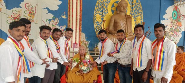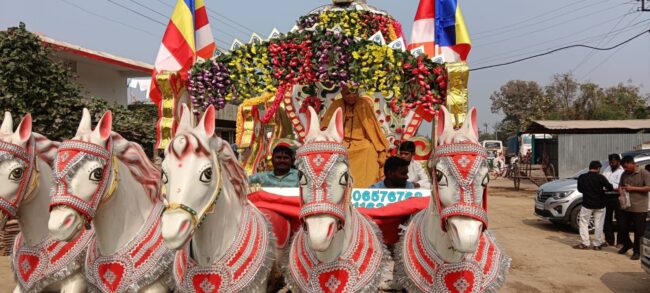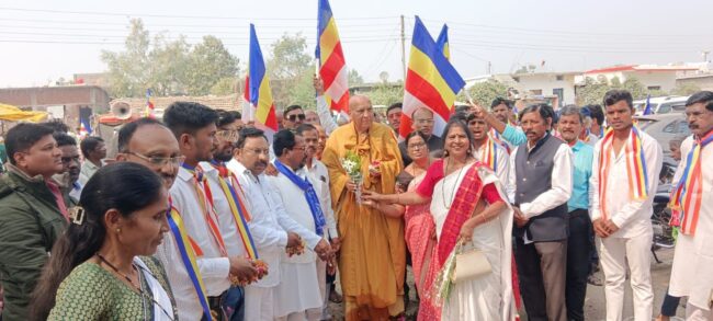 गौतम नगरी चौफेर संजीव भांबोरे भंडारा – पवनी शहरात डॉ. बाबासाहेब आंबेडकर चौक येथे आद्य शिक्षिका क्रांतीज्योती सावित्रीबाई फुले यांच्या जयंतीनिमित्त त्यांना अभिवादन करण्यात आले. त्याचप्रमाणे तथागत गौतम बुद्ध व विश्वभूषण ,भारतरत्न डॉ.बाबासाहेब आंबेडकर यांना अभिवादन करण्यात आले. त्यानंतर पय्या मेत्ता संघाचे अध्यक्ष धम्मगुरु भदंत संघरत्न मानके यांच्या 64 व्या वाढदिवसानिमित्त केक कापण्यात आले. व त्यांचा शाल, पुष्पगुच्छ, देऊन सत्कार करण्यात आला. त्यानंतर पवनी शहरातून त्यांच्या वाढदिवसानिमित्त भव्य धम्म रथ रॅली करण्यात आली .या रॅलीमध्ये असंख्य बौद्ध उपासक, उपासिका सामील झाले होते. सिंदपुरी येथील स्तुपामध्ये वाढदिवसानिमित्त शुभेच्छा दिनाचा कार्यक्रम घेण्यात आला. कार्यक्रम यशस्वी करण्याकरता सामाजिक कार्यकर्ते राजकुमार बनसोड, पत्रकार लक्ष्मीकांत तागडे, एडवोकेट महेंद्र गोस्वामी, अरुण गोंडाणे माजी पंचायत समिती सदस्य, डॉ. सुनील जीवनतारे माजी सभापती पंचायत समिती पवनी, सामाजिक कार्यकर्ते आसित बागडे, कैलास गेडाम, प्रवीण थुलकर, सुदेश वैद्य, इंजिनिअर रूपचंद रामटेके, भदंत धम्मशिखर, जिल्हा परिषद सदस्य मोहन पंचभाई, ज्ञानेश्वर रक्षक गुरुकंज सेवा मंडळ गुरुकुंज मोझरी धर्मदास भांबोरे ,भीमराव वानखेडे, डॉ. बनसोड, प्रेस संपादक व पत्रकार सेवा संघटनेचे राज्य सरचिटणीस संजीव भांबोरे, इंडियन प्रफुल व असंख्य बौद्ध उपासक, उपासिका यांनी सहकार्य केले. कार्यक्रमाचे संचालन एडवोकेट महेंद्र गोस्वामी यांनी केले. तर आभार सामाजिक कार्यकर्ते राजकुमार बनसोड यांनी मानले.