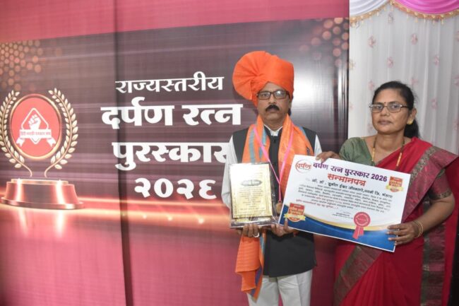 बुलढाणा (मलकापूर) – मराठी पत्रकार दिनानिमित्त हिंदी मराठी पत्रकार संघा च्या वतीने आयोजित दर्पण रत्न पुरस्कार 2026 कार्यक्रम मलकापूर येथील मराठा मंगल कार्यालय येथे आयोजित करण्यात आला सदर कार्यक्रमात महाराष्ट्राचे कानाकोपऱ्यातील आलेल्या विविध क्षेत्रातील कर्तृत्ववान व्यक्तिमत्त्वांचा सत्कार करण्यात आला .आंतरराष्ट्रीय मानांकन आयएसओ 9001_2015 प्रमाणित हिंदी मराठी पत्रकार संघ च्या वतीने विविध क्षेत्रातील कर्तृत्ववान व्यक्तींचा गौरव करण्याच्या उद्देशाने व त्यांच्या कलागुणांना प्रोत्साहन देण्यासाठी दर्पण रत्न पुरस्कार 2026 चे आयोजन करण्यात आले होते. सदर कार्यक्रमांमध्ये सहभागी होण्यासाठी प्रस्ताव ऑनलाइन मागवण्यात आले होते.