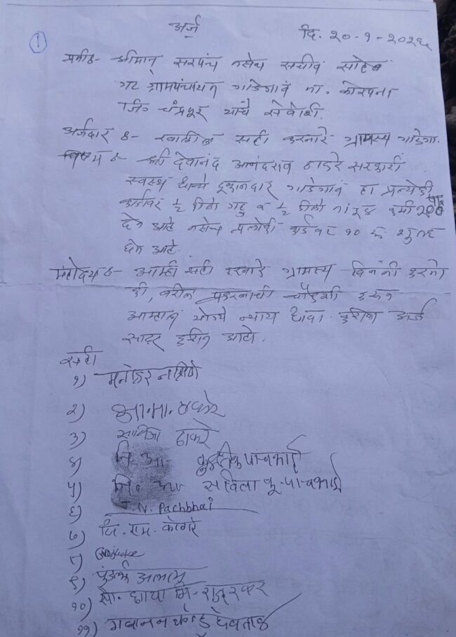 विषय : मौजा गाडेगाव ता. कोरपना येथील खालील सह्या अंगुठे करणारी ग्रामवासी