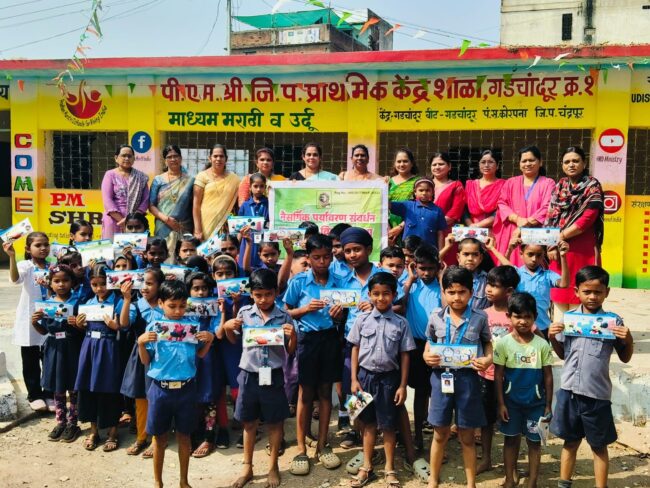 गौतम नगरी चौफेर बादल बेले राजुरा – ४ फेब्रुवारी नैसर्गिक पर्यावरण संवर्धन व मानवता विकास संस्थेच्या कोरपना तालुका महिला उपाध्यक्षा अरुणा सुभाष सालवटकर यांच्या वाढदिवसानिमित्याने गडचांदूर येथील पी. एम. श्री. जिल्हा परिषद प्राथमिक केंद्र शाळा क्रमांक १ येथील विद्यार्थ्यांना शैक्षणिक साहित्य पाउच भेट देऊन वाढदिवस साजरा केला. यावेळी सुलभा कुरेकर, कोरपना तालुका महिला सचिव, लीना लांजेकर, गडचांदूर शहर महिला अध्यक्षा, सीमा वरारकर, वंदना मोरे, संध्या वाघाडे, महिला संघटीका गडचांदूर, सुलताना शेख,मुख्याध्यापिका जिल्हा परिषद प्राथमिक शाळा गडचांदूर, चंदू कोटनाके सहाय्यक शिक्षक आदींची प्रामुख्याने उपस्थिती होती. नैसर्गिक पर्यावरण संवर्धन व मानवता विकास संस्थेच्या पदाधिकारी, संघटक, सदस्य हे मुख्यत्वे करून पर्यावरण संवर्धन व मानवता विकासाचे कार्यक्रम, जनजागृती वर आधारित उपक्रम राबवून वाढदिवस साजरा करतात हे विशेष. पर्यावरणाचे संवर्धन, संरक्षण व्हावे तसेच समाजातील दुर्बल घटक , शालेय विद्यार्थी , ज्येष्ठ नागरिक, दिव्यांगासाठी संस्थेचे पदाधिकारी, संघटक,सदस्य हे स्वतः वर्गणी काढून उपक्रम – कार्यक्रम राबवित असतात. या कार्यक्रमाचे सूत्रसंचालन संघमित्रा ताकसांडे, गडचांदूर शहर कोषाध्यक्ष यांनी केले. आभार माया टिकले, गडचांदूर शहर महिला सचिव यांनी मानले. कार्यक्रमाच्या यशस्वितेकरिता नैसर्गिक पर्यावरण संवर्धन व मानवता विकास संस्थेच्या कार्यकर्त्यांनी अथक परिश्रम घेतले.