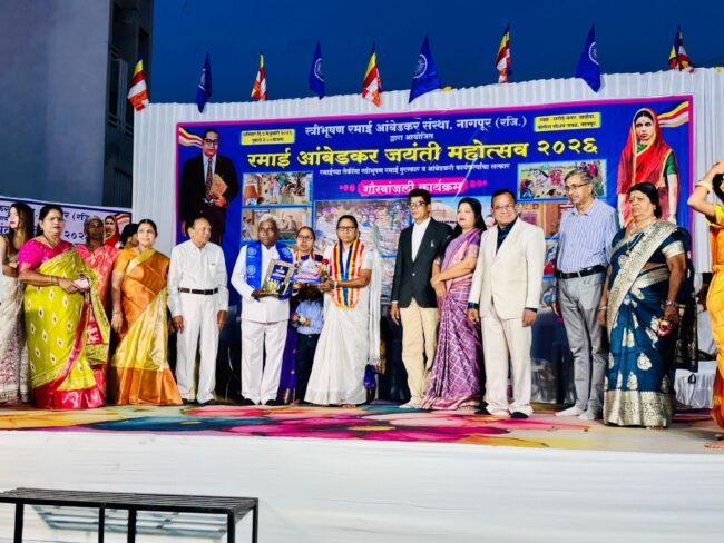गौतम नगरी चौफेर संजीव भांबोरे नागपूर – स्त्री भूषण रमाई आंबेडकर संस्था नागपूर द्वारा आयोजित रमाई आंबेडकर जयंती महोत्सव 2026 सर्वोदय नगर वाठोडा नागपूर येथे त्याग मूर्ती माता रमाई जयंती कार्यक्रम उत्साह साजरा करण्यात आला. सदर कार्यक्रमात शांतीनगर कावळा पेठ येथील धम्म चळवळीचे सामाजिक कार्यकर्ते जीवन बोधी बौद्ध यांना सन्मानचिन्ह, भारतीय संविधान, शाल, पुष्पगुच्छ देऊन सत्कार करण्यात आला.