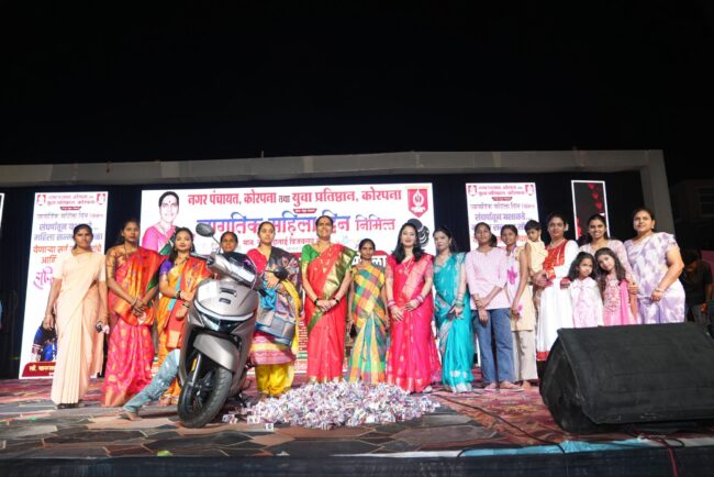 जागतिक महिला दिनानिमित्त नगर पंचायत, कोरपना व युवा प्रतिष्ठान, कोरपना यांच्या संयुक्त विद्यमाने “संघर्षातून यशाकडे – महिला सन्मान सोहळा” हा भव्य कार्यक्रम बुधवार, दि. ११ मार्च २०२६ रोजी सायंकाळी आंबेडकर चौक, नगरपंचायत मागे येथे मोठ्या उत्साहात पार पडला. नगराध्यक्ष नंदाताई विजयराव बावणे यांच्या संकल्पनेतून आयोजित करण्यात आलेल्या या कार्यक्रमाला नागरिक व महिलांचा उत्स्फूर्त प्रतिसाद लाभला.