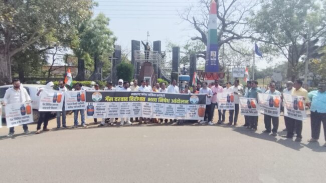 गौतम नगरी चौफेर बादल बेले राजुरा (ता.प्र.) :– केंद्र व राज्य शासनाच्या इंधन दरवाढीच्या धोरणाविरोधात तसेच घरगुती गॅस सिलेंडरच्या वाढलेल्या किमती आणि कृत्रिम तुटवड्याच्या निषेधार्थ आज राजुरा येथे तीव्र धरणे आंदोलन करण्यात आले. महाराष्ट्र प्रदेश काँग्रेसचे प्रदेशाध्यक्ष मा. हर्षवर्धनजी सपकाळ व चंद्रपूर जिल्हा काँग्रेस कमिटीचे जिल्हाध्यक्ष माजी आमदार सुभाषभाऊ धोटे यांच्या सूचनेनुसार राजुरा नगरपरिषदेचे नगराध्यक्ष अरुणभाऊ धोटे आणि तालुका काँग्रेस कमिटीचे अध्यक्ष रंजन लांडे यांच्या नेतृत्वाखाली संविधान चौक येथे हे आंदोलन पार पडले. यानंतर संविधान चौक ते तहसील कार्यालय पर्यंत रॅली काढण्यात आली. यावेळी जोरदार नारेबाजी करीत शासनाचा निषेध करण्यात आला. आंदोलनाच्या शेवटी यासंदर्भातील विविध मागण्यांचे निवेदन तहसीलदार राजुरा यांच्या मार्फत महामहिम राष्ट्रपती द्रौपदी मुर्मु यांना पाठविण्यात आले व समस्या सोडवण्याची विनंती करण्यात आली. गॅस दरवाढ व वाढत्या महागाईविरोधात तीव्र निषेध नोंदविण्यात आला.